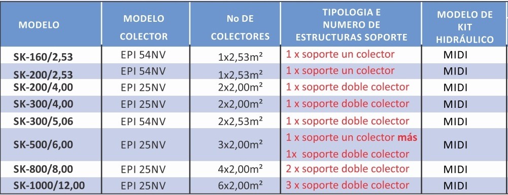 Nota: los sistemas pueden variar a medida del modelo de los colectores y su número